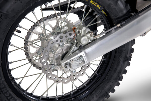 The 500 is the latest in a line of enduro machines specifically designed for enduro riders. The semi-perimeter frame, as is the case throughout the range, is a welded configuration made from chrome molybdenum steel.