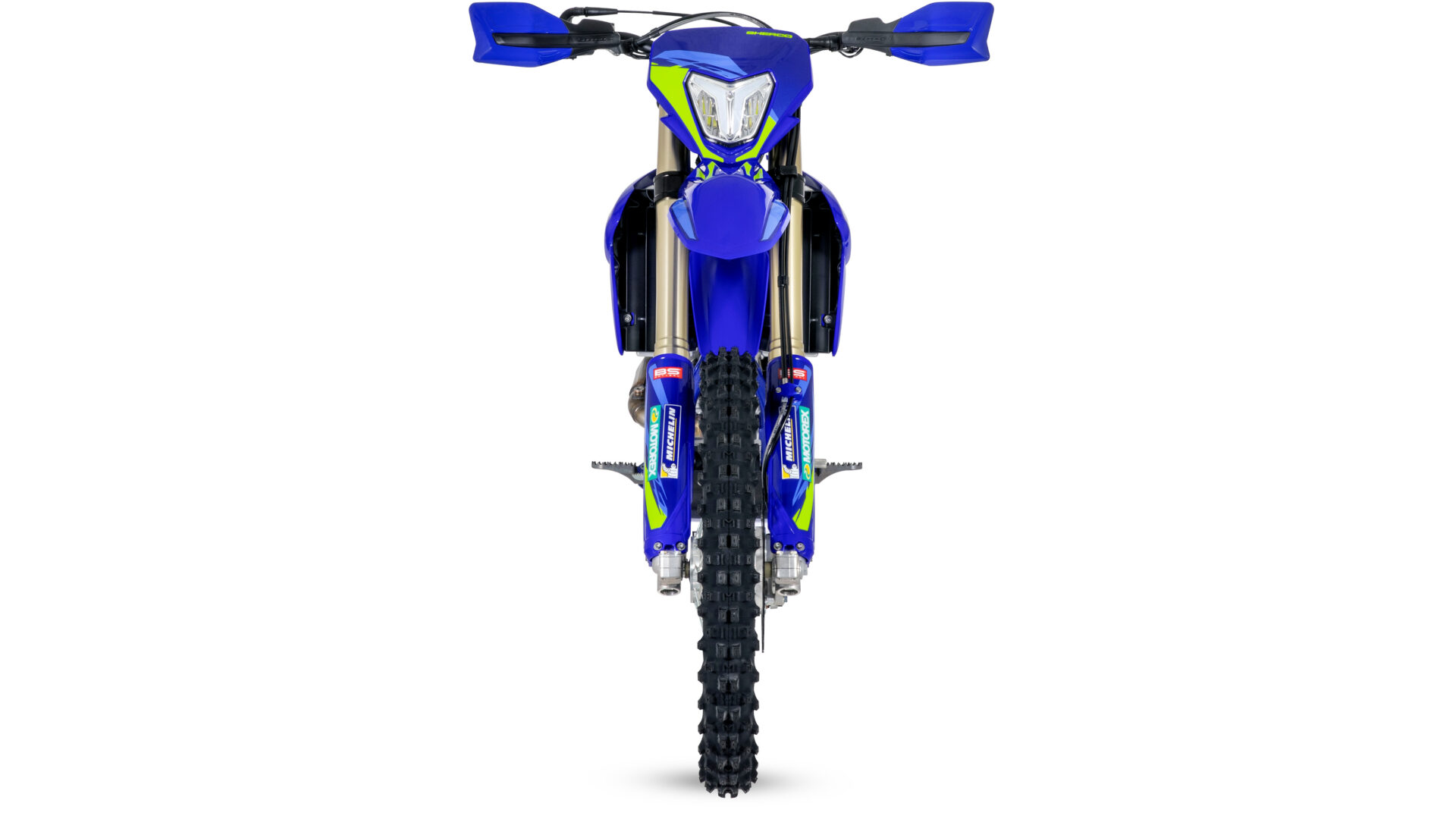 THE BEST ENDURO BIKE IN THE MARKET New 2026 graphics kit Blue plastic kit New Galfer rear brake disc: optimized braking performance and weight reduction New Nilos seal at the bottom of the steering stem: reduced friction, improved sealing, and better protection against mud SPES header and Akrapovic silencer